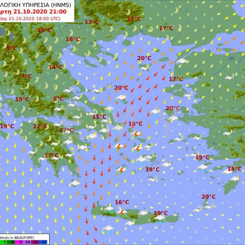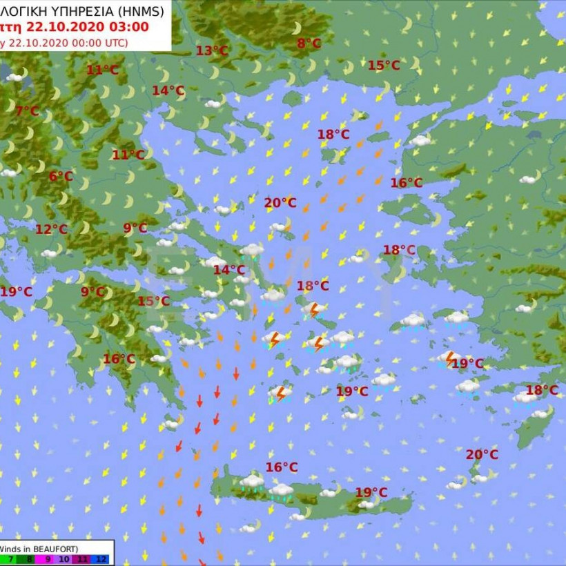 Άνεμοι: Βόρειοι βορειοανατολικοί 4 με 5 και στα ανατολικά τοπικά 6 μποφόρ.
