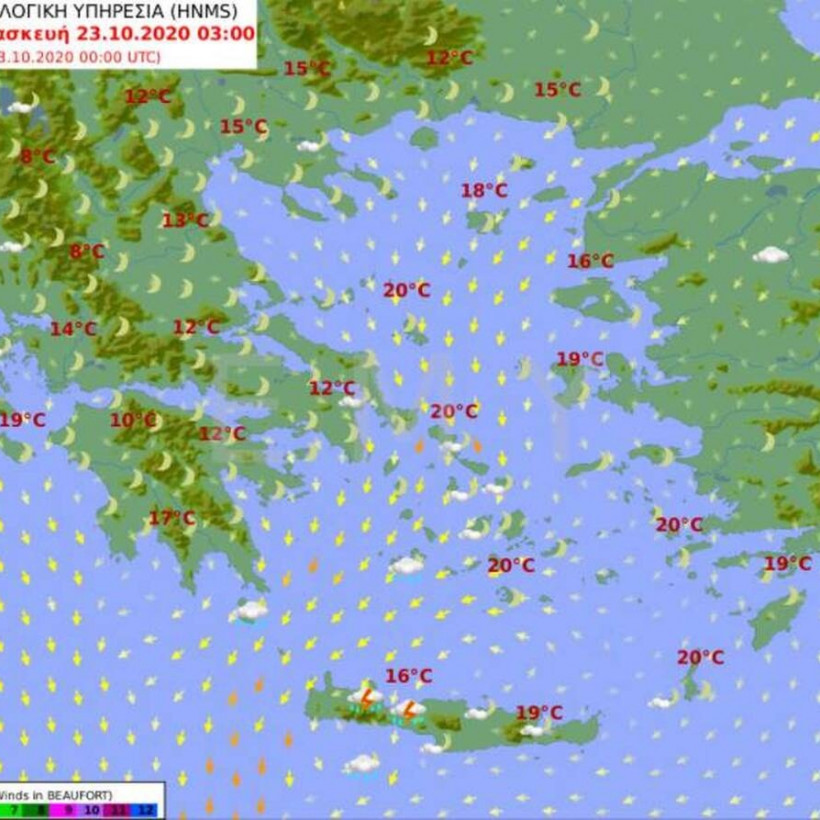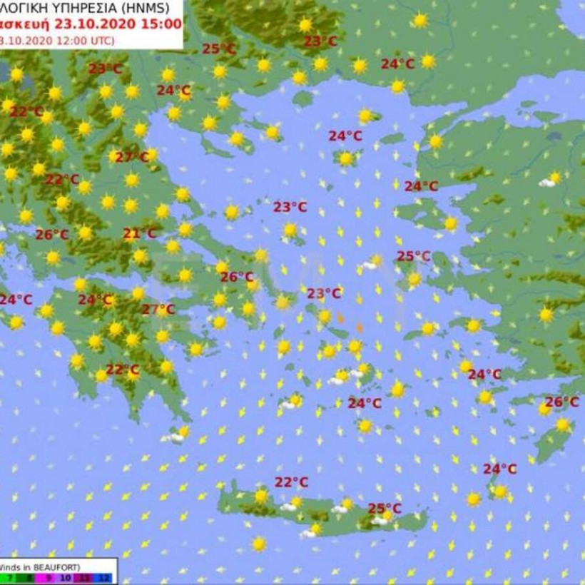 Άνεμοι: Από βόρειες διευθύνσεις 3 με 4 και στα ανατολικά τοπικά 5 μποφόρ.