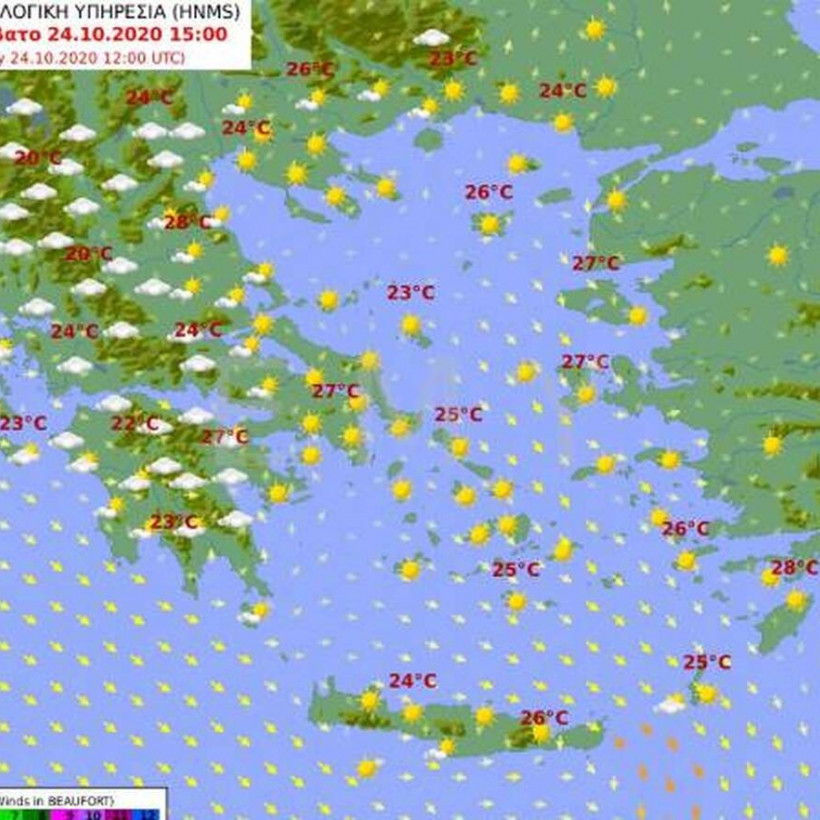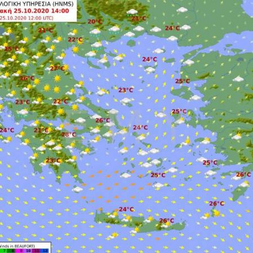 Θερμοκρασία: Από 11 έως 26 βαθμούς Κελσίου. Στην Ήπειρο κατά τόπους 4 με 6 βαθμούς χαμηλότερη.