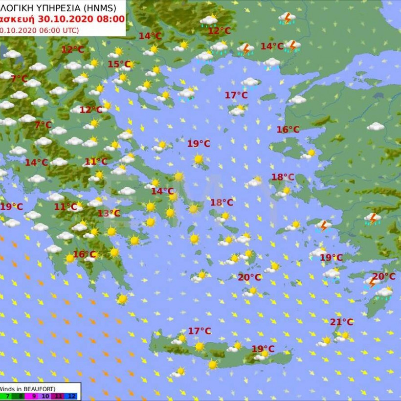 Αναλυτικά η πρόγνωση του καιρού από την Εθνική Μετεωρολογική Υπηρεσία για την Παρασκευή 30 Οκτωβρίου