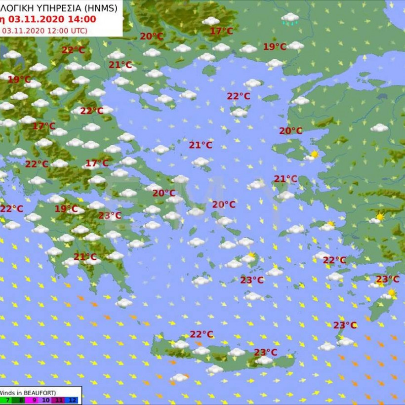 Οι άνεμοι θα πνέουν βόρειοι βορειοανατολικοί 4 με 6, στο Αιγαίο 7 και πρόσκαιρα τοπικά 8 μποφόρ.