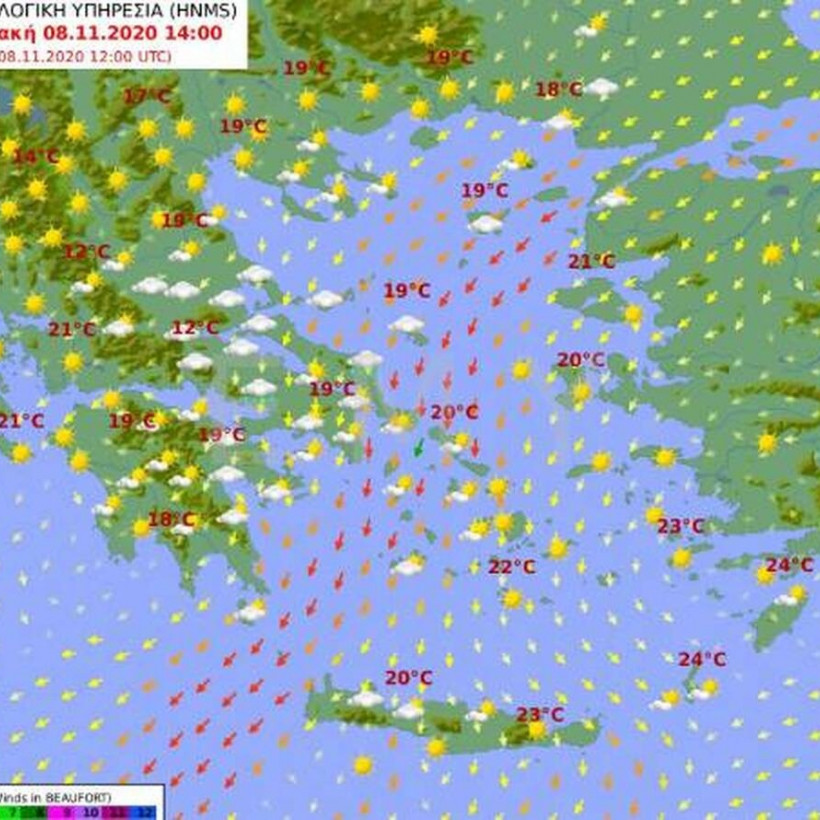 Άνεμοι: Βορειοανατολικοί 6 με 7 και στα ανατολικά και τα νότια τοπικά 8 μποφόρ.