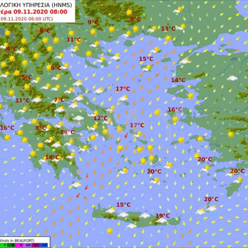 Αναλυτικά η πρόγνωση του καιρού από την Εθνική Μετεωρολογική Υπηρεσία για τη Δευτέρα 9 Νοεμβρίου