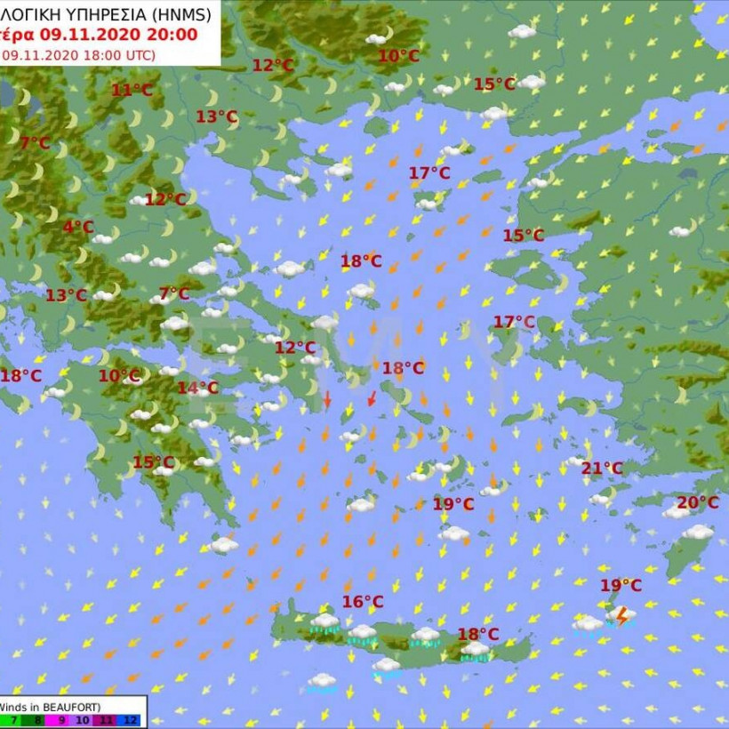Άνεμοι: Βορειοανατολικοί 4 με 5 και στα ανατολικά και νότια 6 μποφόρ.