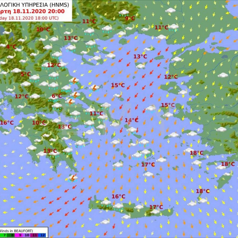 Αναλυτικά η πρόγνωση του καιρού από την Εθνική Μετεωρολογική Υπηρεσία για την Τετάρτη 18 Νοεμβρίου