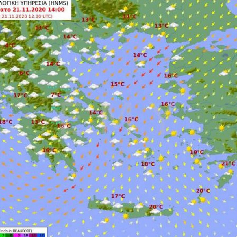 Άνεμοι: Ανατολικοί νοτιοανατολικοί 4 με 6 και στο Ιόνιο τοπικά 7 μποφόρ.