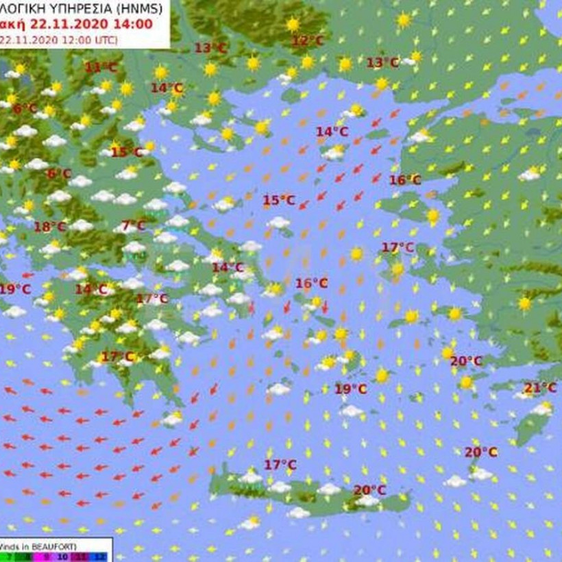 Άνεμοι: Στα νησιά του ανατολικού Αιγαίου βορειοανατολικοί 5 με 7 μποφόρ. Στα Δωδεκάνησα βόρειοι βορειοδυτικοί 4 με 5 μποφόρ.
