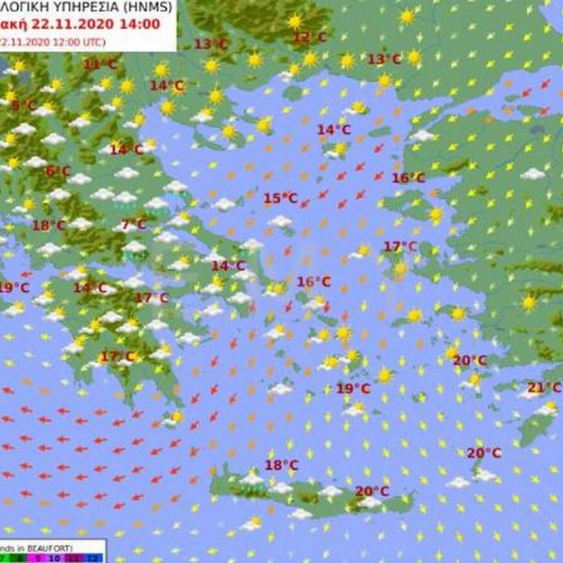 Άνεμοι: Στα νησιά του ανατολικού Αιγαίου βορειοανατολικοί 5 με 7 και το πρωί τοπικά 8 μποφόρ. Στα Δωδεκάνησα βόρειοι βορειοδυτικοί 4 με 5 μποφόρ.