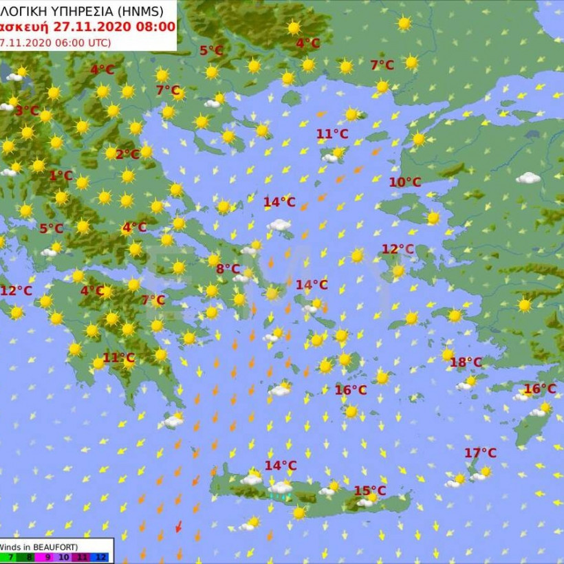 Καιρός σήμερα - Ειδήσεις: Γενικά καλός παρουσιαστεί ο καιρός σήμερα, Παρασκευή 27 Νοεμβρίου, στο μεγαλύτερο τμήμα της χώρας - Δείτε την πρόγνωση του καιρού μέχρι την Τρίτη 1η Δεκεμβρίου, καθώς και τους προγνωστικούς χάρτες της Εθνικής Μετεωρολογικής Υπηρεσίας (ΕΜΥ).