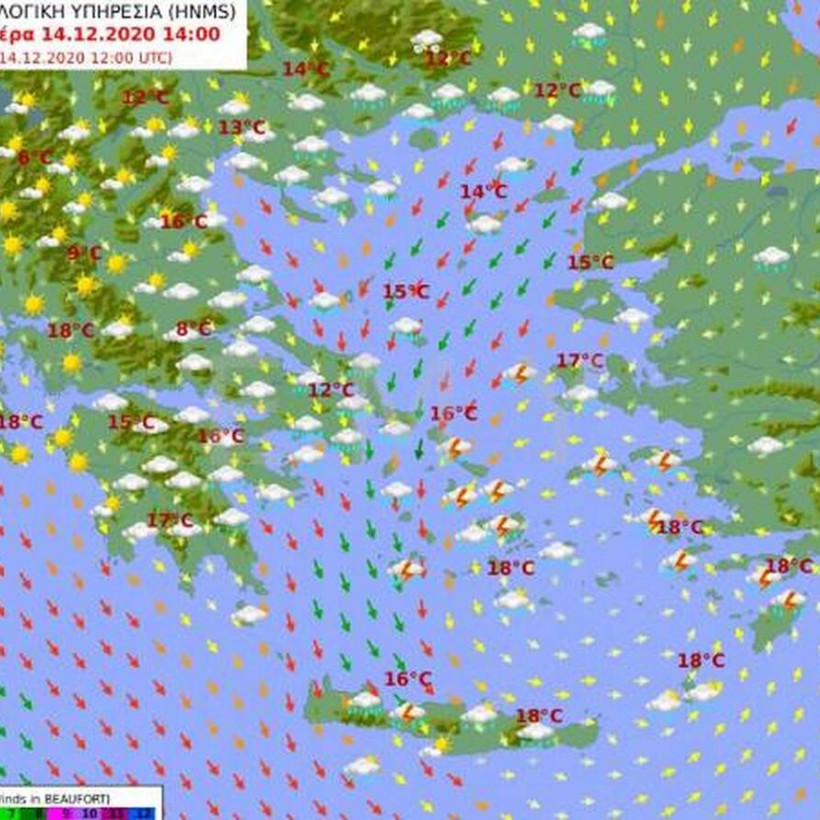 Δείτε στην gallery που ακολουθεί τους προγνωστικούς χάρτες της ΕΜΥ με τον καιρό έως και τη Δευτέρα (14/12):