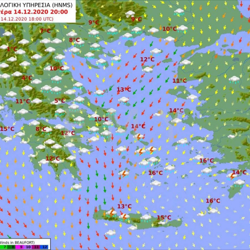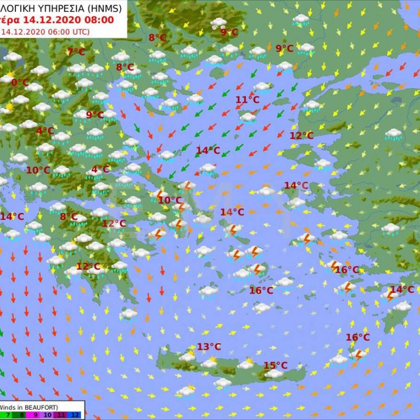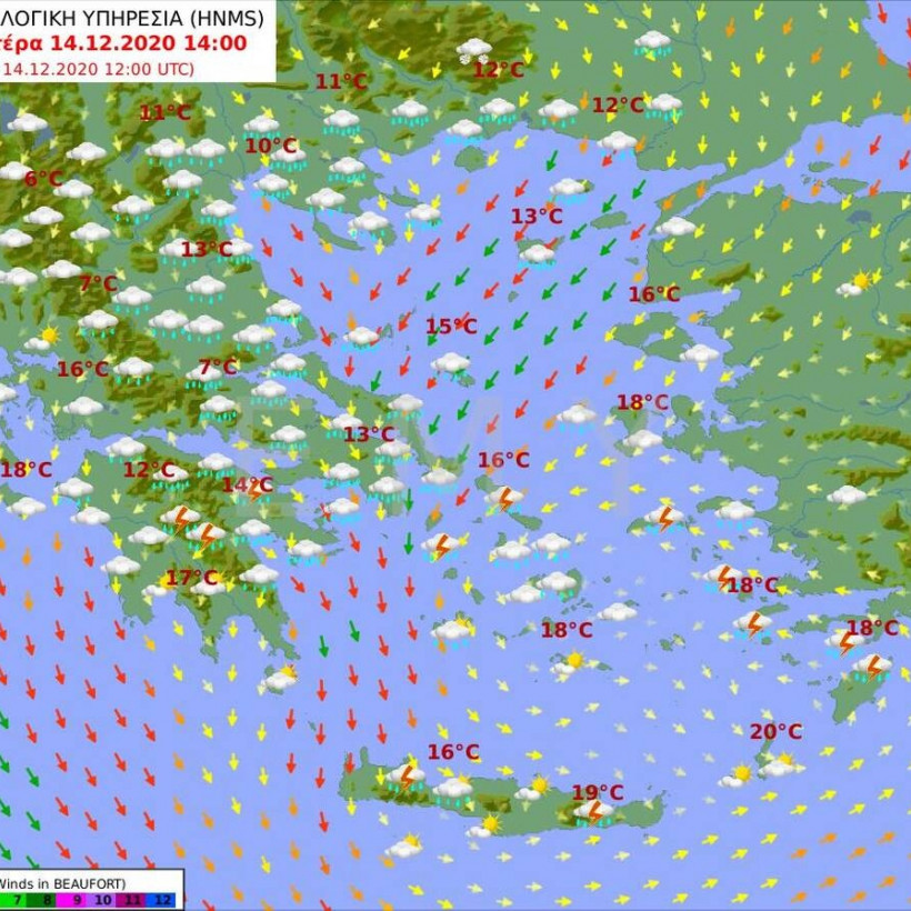 Αναλυτικά η πρόγνωση του καιρού από την Εθνική Μετεωρολογική Υπηρεσία για τη Δευτέρα 14 Δεκεμβρίου