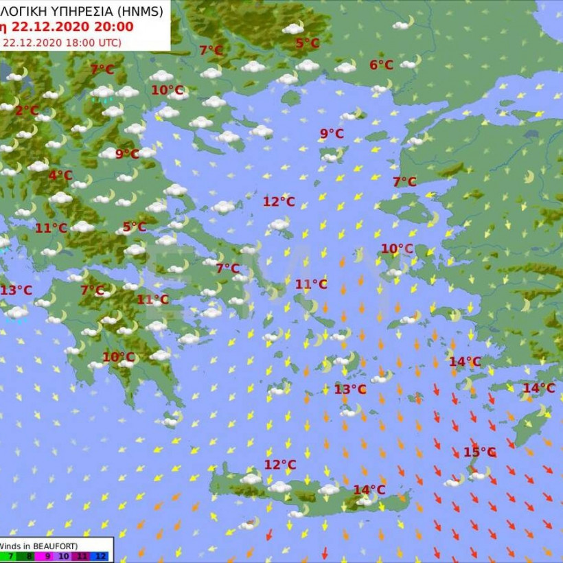 Αναλυτικά η πρόγνωση του καιρού από την Εθνική Μετεωρολογική Υπηρεσία για την Τρίτη 22 Δεκεμβρίου