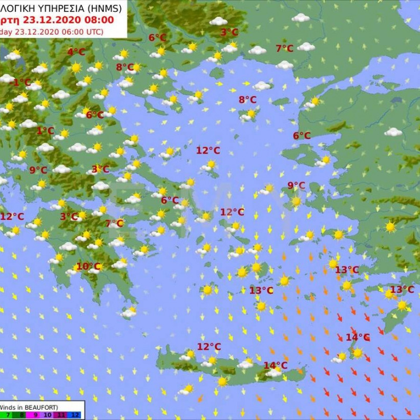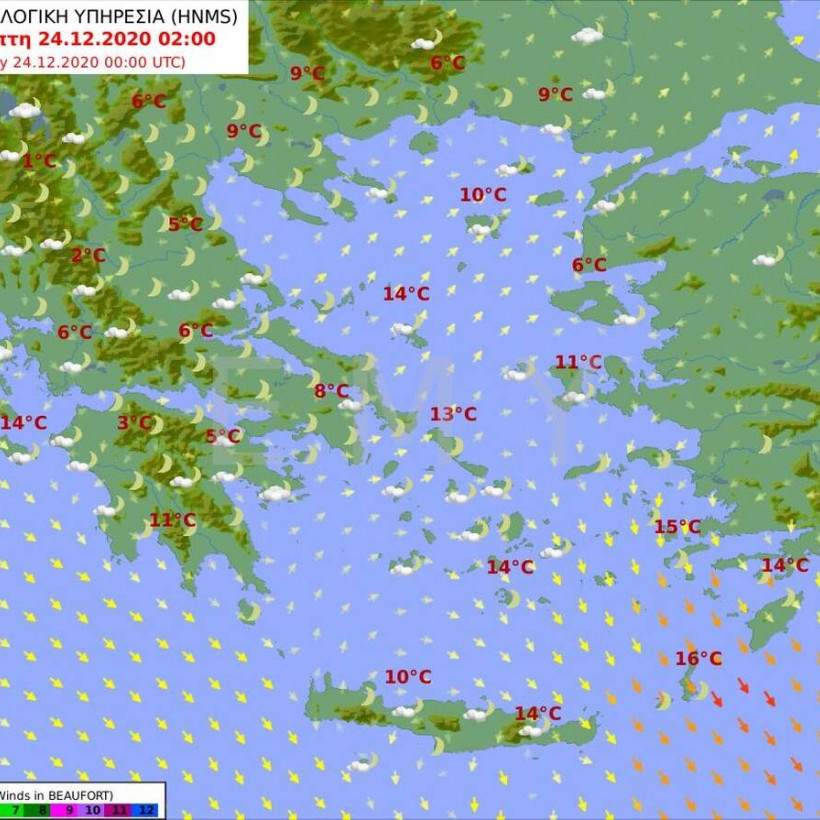Ο καιρός την Πέμπτη 24 Δεκεμβρίου (Παραμονή Χριστουγέννων)