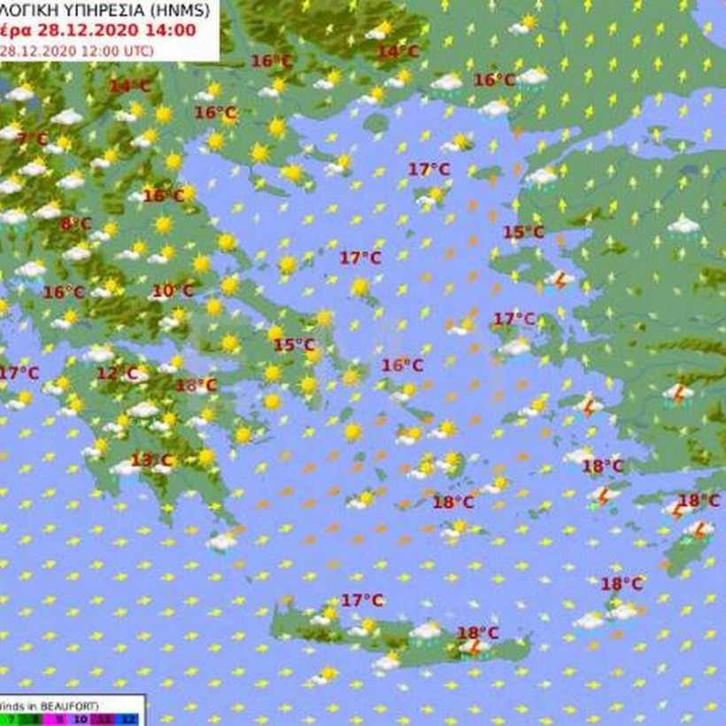 Οι άνεμοι θα πνέουν νότιοι νοτιοδυτικοί 4 με 6 και στα πελάγη τοπικά 7 μποφόρ.