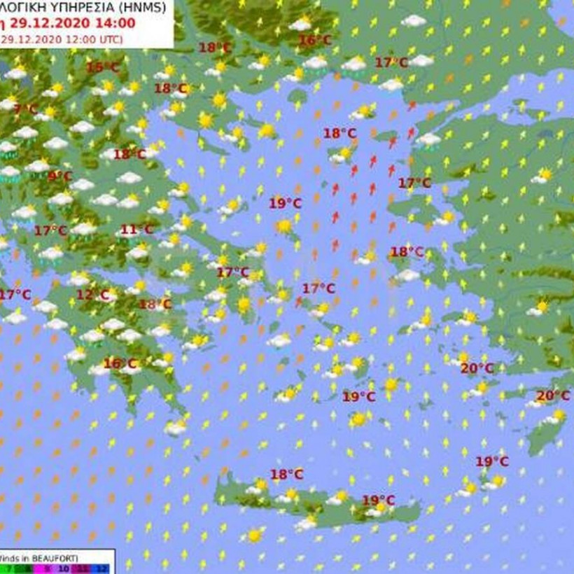 Άνεμοι: Από νότιες διευθύνσεις 3 με 5 και στα θαλάσσια έως 6 με 7 μποφόρ.