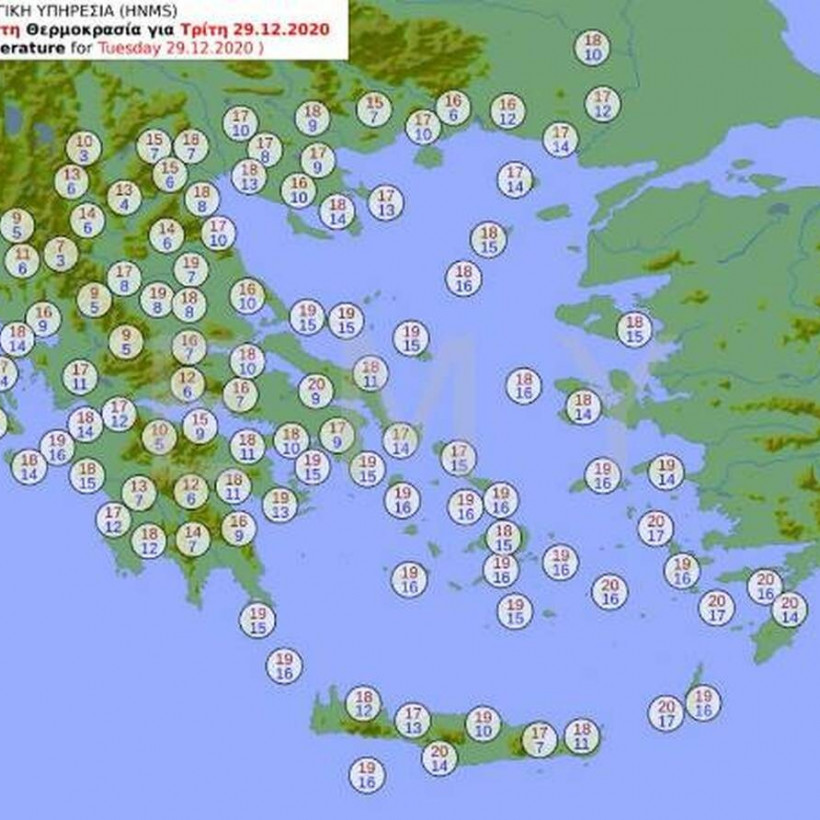 Θερμοκρασία: Από 5 έως 16 βαθμούς Κελσίου. Στη δυτική Μακεδονία η μέγιστη 3 με 4 βαθμούς χαμηλότερη.