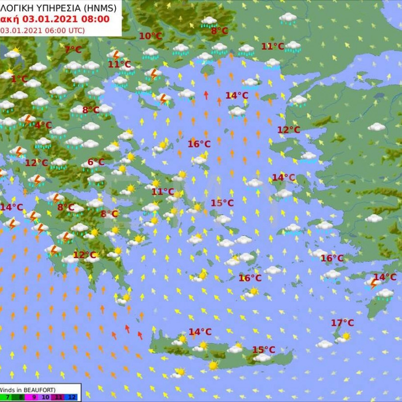 Αναλυτικά η πρόγνωση του καιρού από την Εθνική Μετεωρολογική Υπηρεσία για το Σάββατο 2 Ιανουαρίου