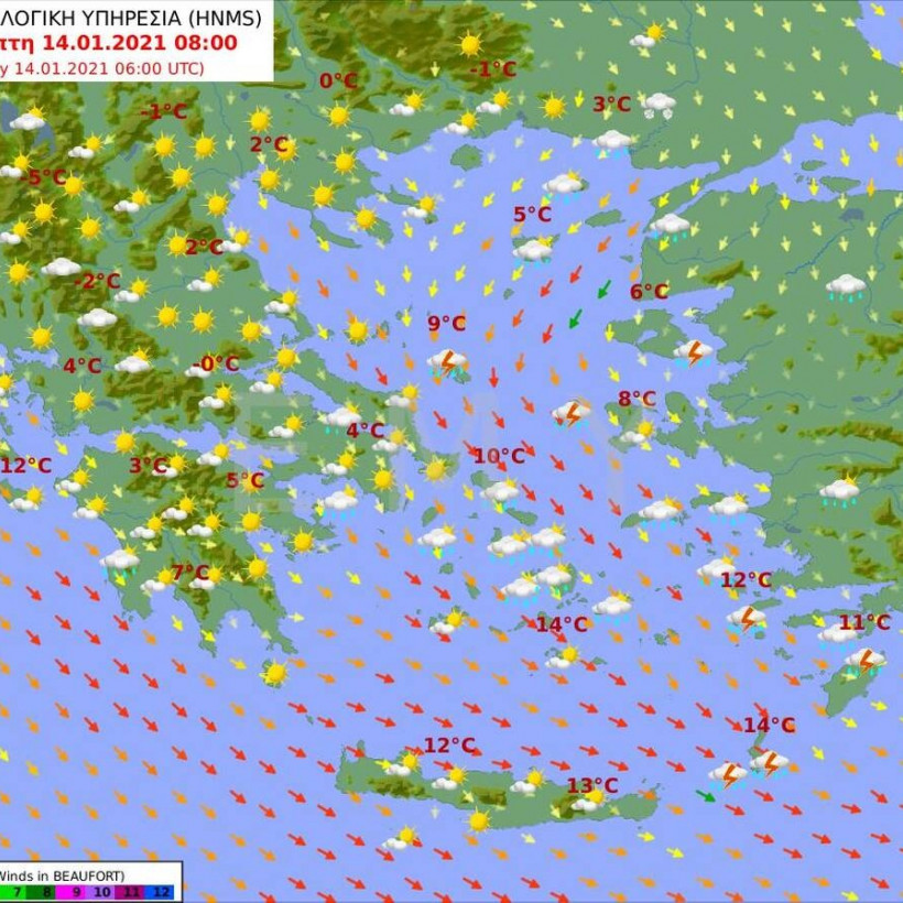 Ο καιρός την Πέμπτη 14 Ιανουαρίου