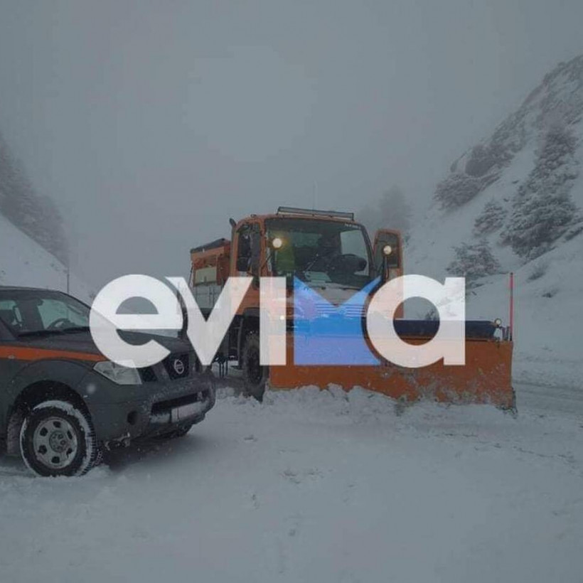 Πυκνή χιονόπτωση σημειώθηκε και στη Ράχη – Δίρφυς με τα μηχανήματα της περιφέρειας Στερεάς Ελλάδας να επιχειρούν τη διάνοιξη του οδικού δικτύου.