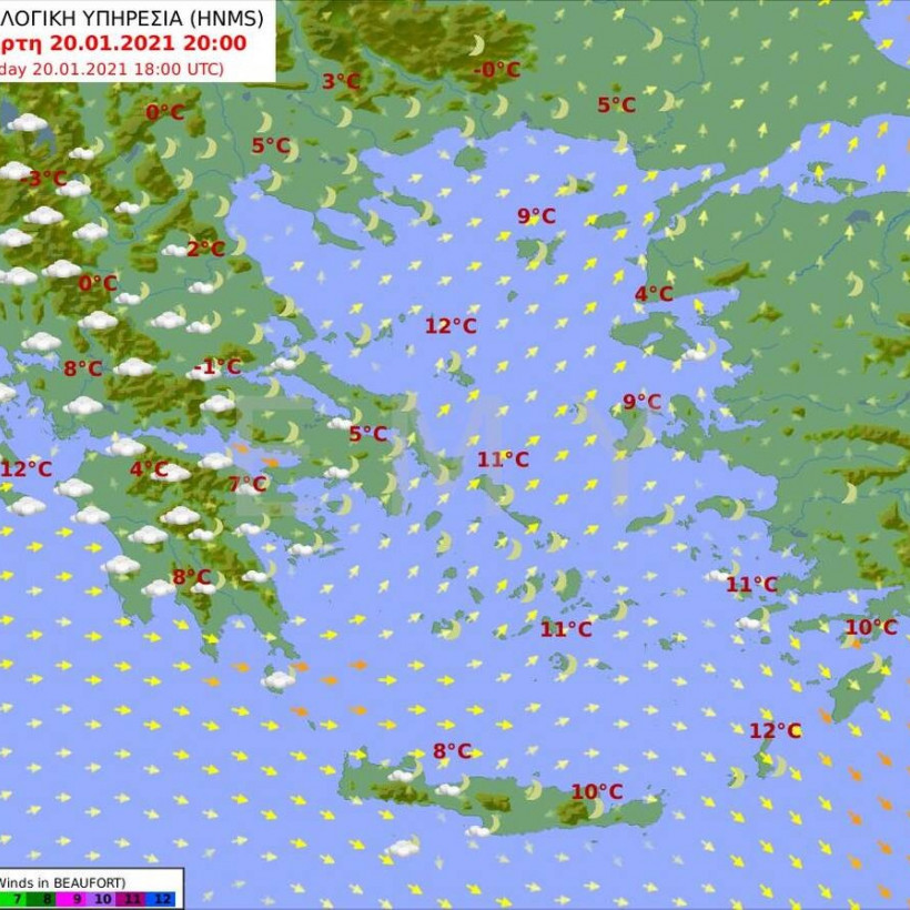 Αναλυτικά η πρόγνωση του καιρού από την Εθνική Μετεωρολογική Υπηρεσία για την Τετάρτη 20 Ιανουαρίου