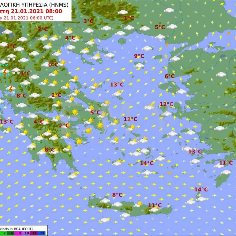 Ο καιρός την Πέμπτη 21 Ιανουαρίου