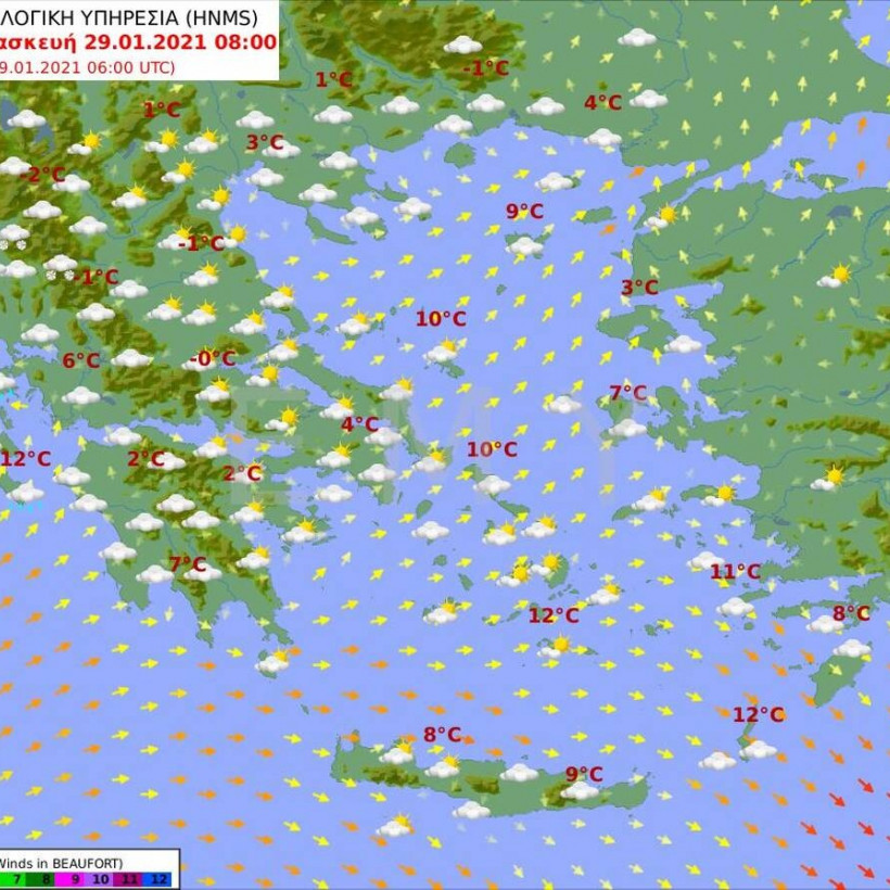 Αναλυτικά η πρόγνωση του καιρού από την Εθνική Μετεωρολογική Υπηρεσία για την Παρασκευή 29 Ιανουαρίου