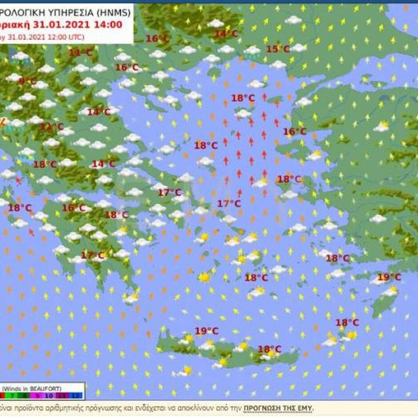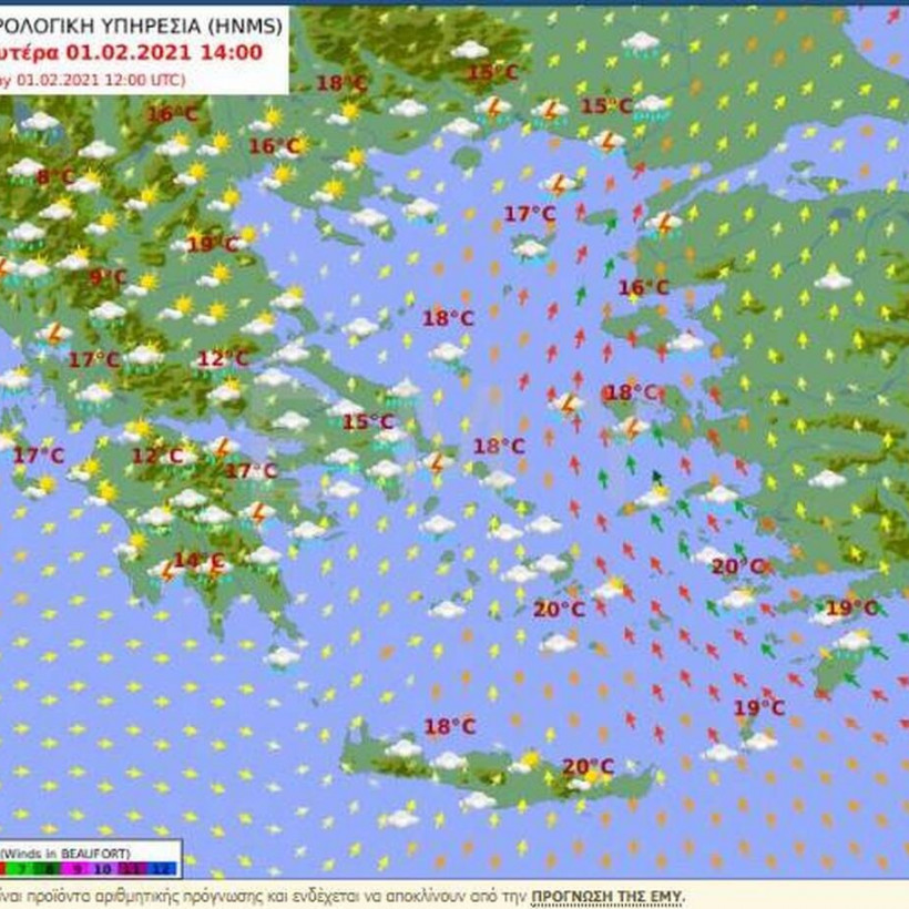 Επιδείνωση του καιρού προβλέπεται από αύριο Κυριακή (31-01-2021) από νωρίς το απόγευμα στη δυτική, βαθμιαία στη βόρεια Ελλάδα και τη Δευτέρα (01-02-2021) στα νησιά του βορείου και ανατολικού Αιγαίου, με ισχυρές βροχές και καταιγίδες που θα συνοδεύονται κατά τόπους από χαλαζοπτώσεις και θυελλώδεις νότιους ανέμους στο Αιγαίο, εντάσεως 7 με 8 και πιθανώς τοπικά 9 μποφόρ.