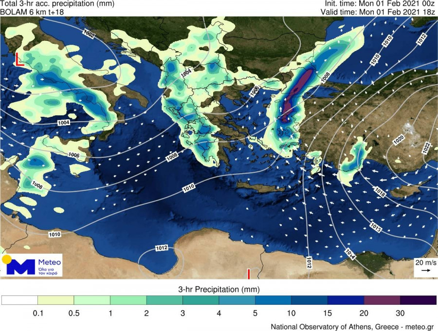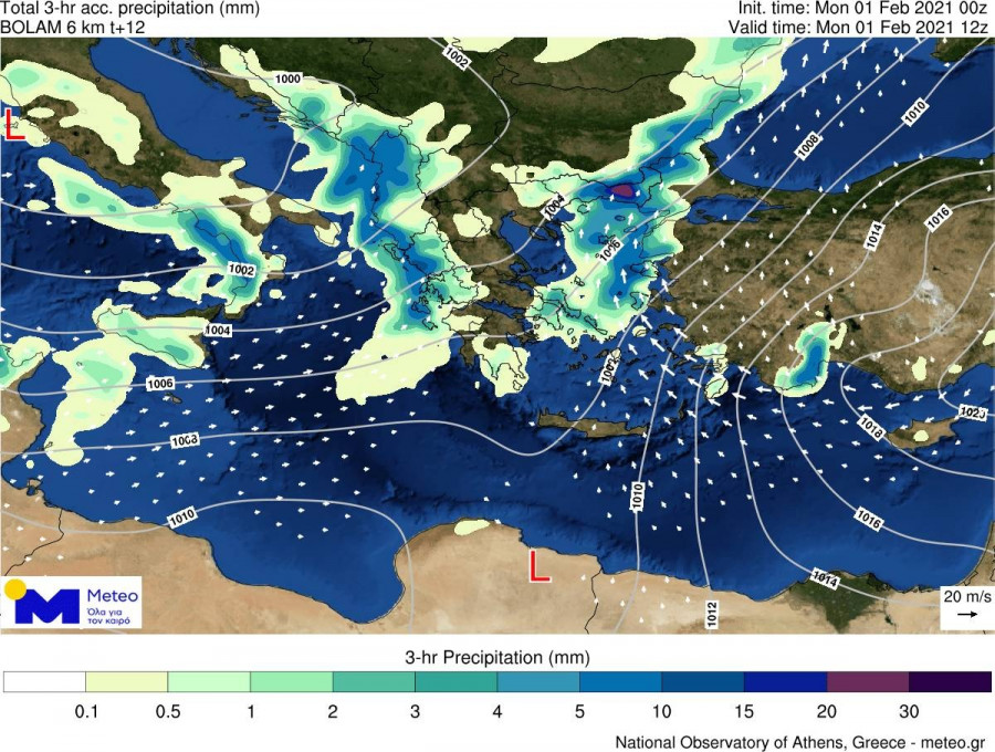 Αναλυτικά η πρόγνωση του καιρού από την Εθνική Μετεωρολογική Υπηρεσία για τη Δευτέρα 1η Φεβρουαρίου