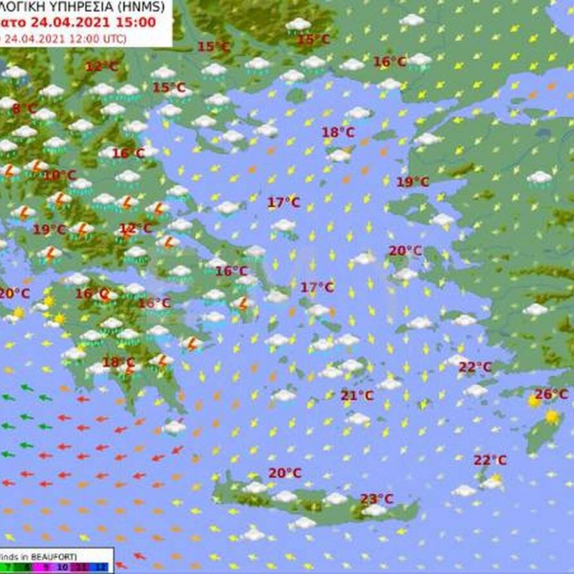 Θερμοκρασία: Από 12 έως 19 και στην Κρήτη έως 23 βαθμούς Κελσίου.