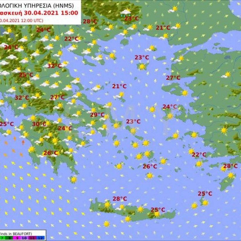 Ο χάρτης των θερμοκρασιών από την ΕΜΥ για σήμερα Μεγάλη Παρασκευή 30 Απριλίου