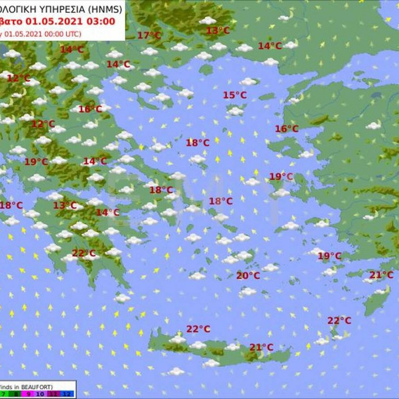 Άνεμοι: Από νότιες διευθύνσεις 2 με 4 και στα Δωδεκάνησα από το απόγευμα δυτικοί βορειοδυτικοί 4 με 5 μποφόρ.