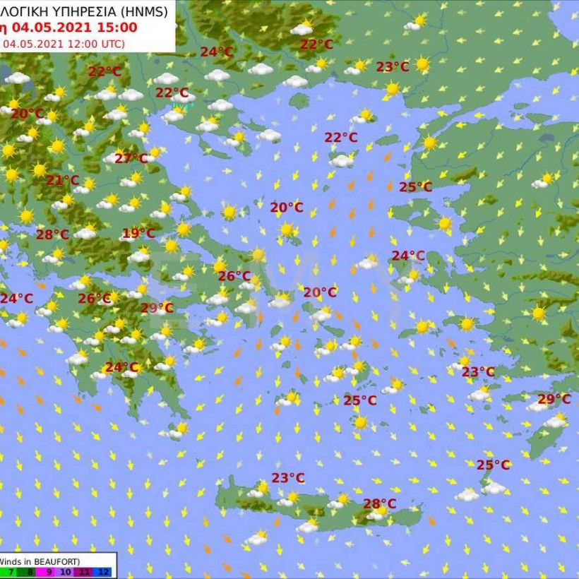Οι άνεμοι θα πνέουν από ανατολικές διευθύνσεις 3-5 και τοπικά στα νότια πελάγη 6 μποφόρ.