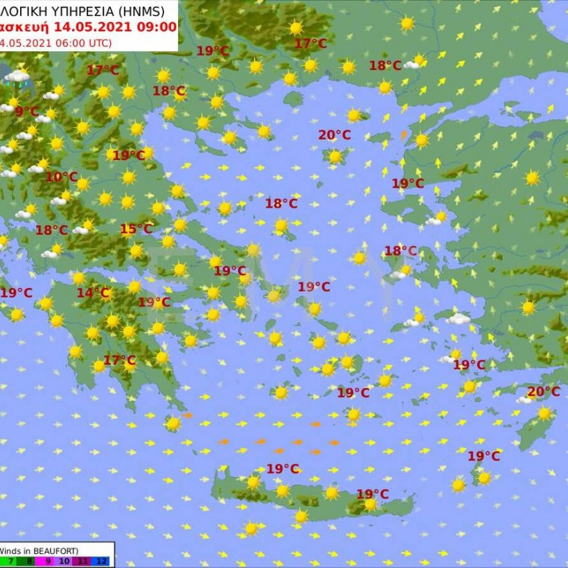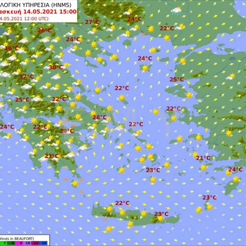 Ο χάρτης των θερμοκρασιών από την ΕΜΥ για σήμερα Παρασκευή 14 Μαΐου