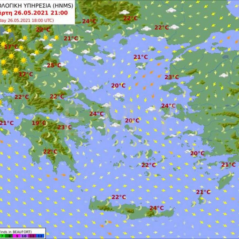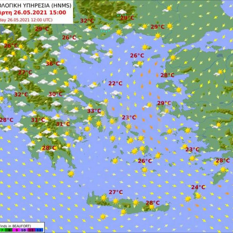 Ο χάρτης των θερμοκρασιών από την ΕΜΥ για σήμερα Τετάρτη 26 Μαΐου