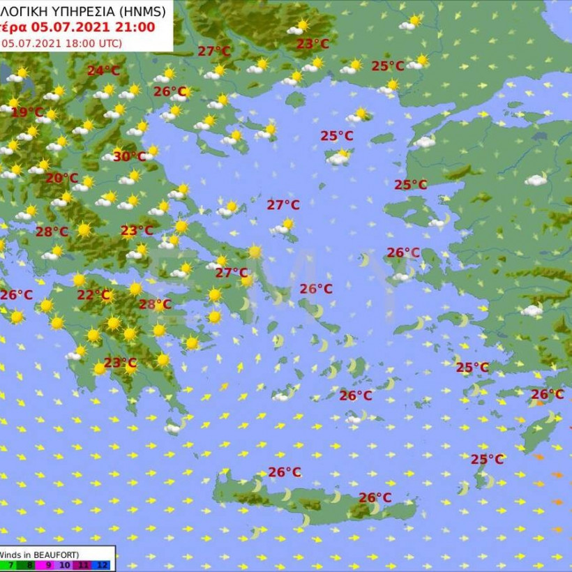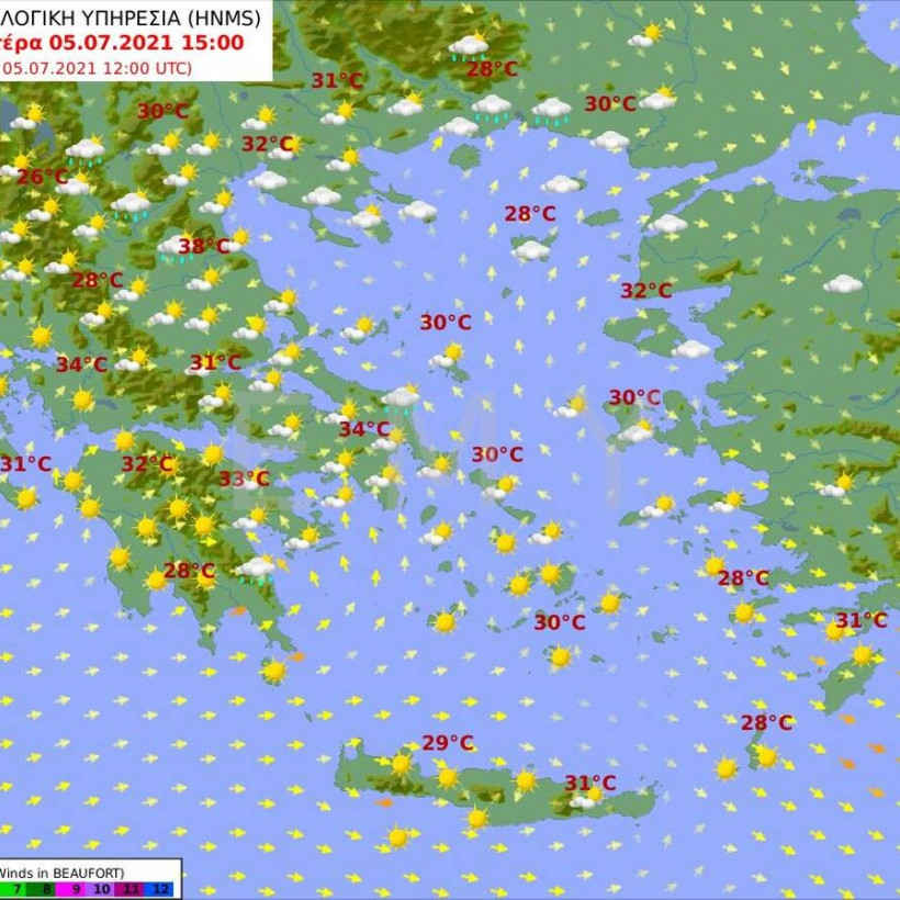 Αναλυτικά η πρόγνωση του καιρού από την Εθνική Μετεωρολογική Υπηρεσία για τη Δευτέρα 5 Ιουλίου