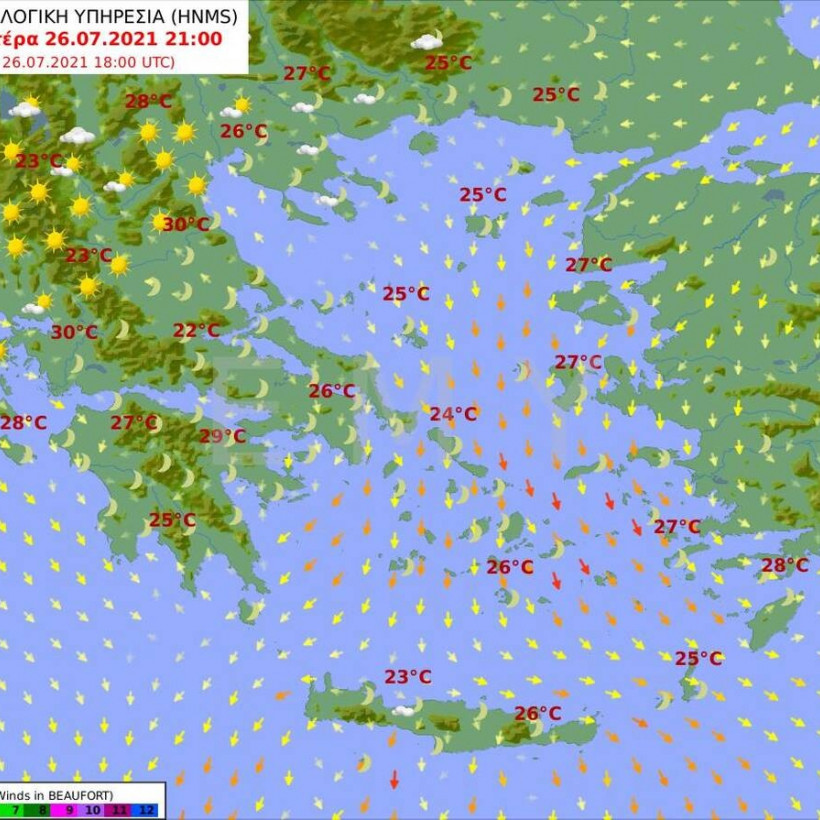 Αναλυτικά η πρόγνωση του καιρού από την Εθνική Μετεωρολογική Υπηρεσία για τη Δευτέρα 26 Ιουλίου