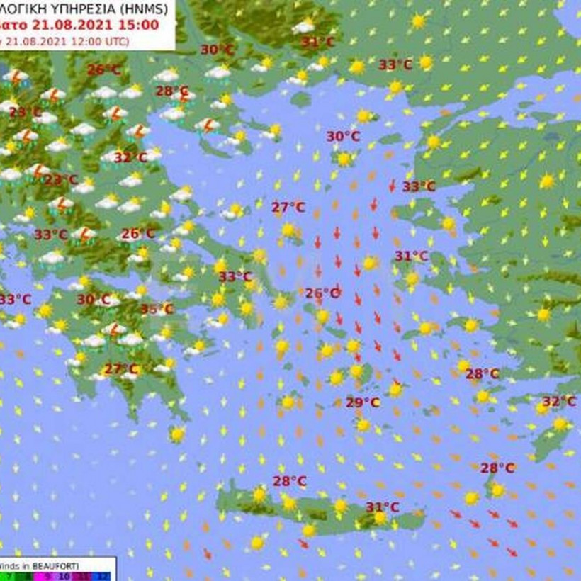 Θερμοκρασία: Από 23 έως 30 και κατά τόπους στη Κρήτη 33 βαθμούς Κελσίου.