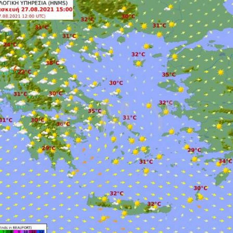 Θερμοκρασία: Από 22 έως 31 και κατά τόπους στην Κρήτη έως 34 βαθμούς Κελσίου