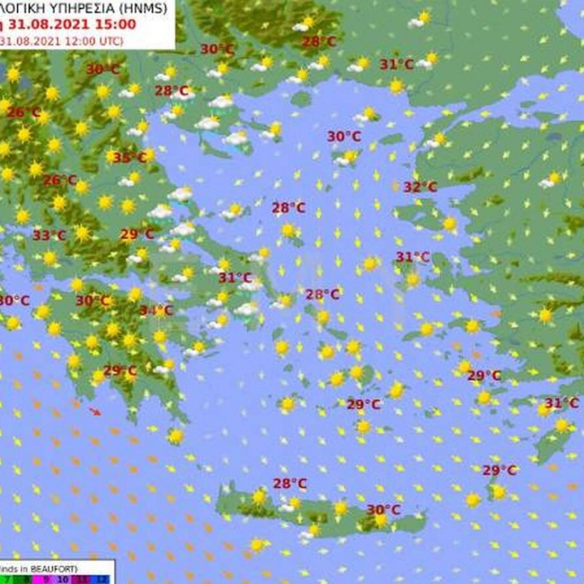 Θερμοκρασία: Από 20 έως 33 βαθμούς Κελσίου. Στην Ήπειρο 2 με 3 βαθμούς χαμηλότερη.