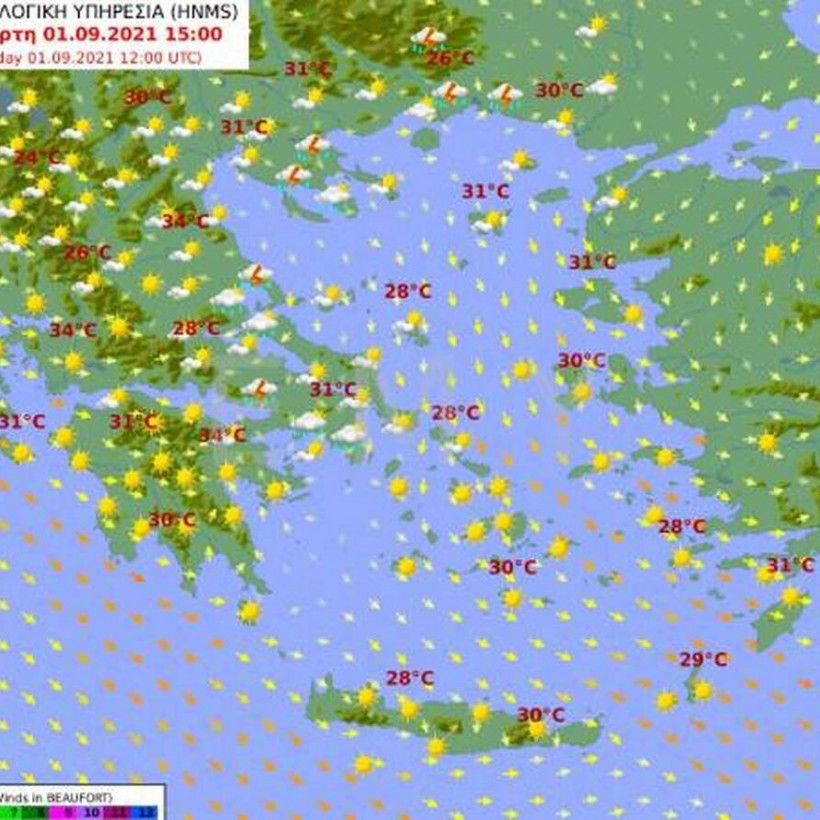 Θερμοκρασία: Από 15 έως 32 βαθμούς Κελσίου. Στη δυτική Μακεδονία η ελάχιστη θα είναι 3 με 5 βαθμούς χαμηλότερη.