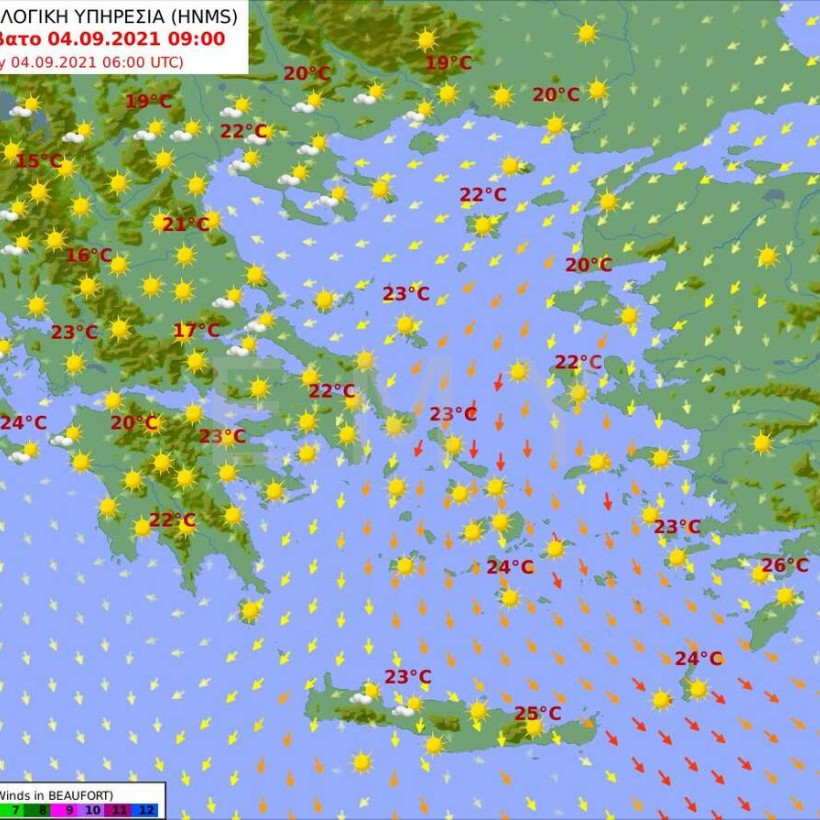 Θερμοκρασία: Από 22 έως 28 και στη νότια Κρήτη έως 31 βαθμούς Κελσίου.