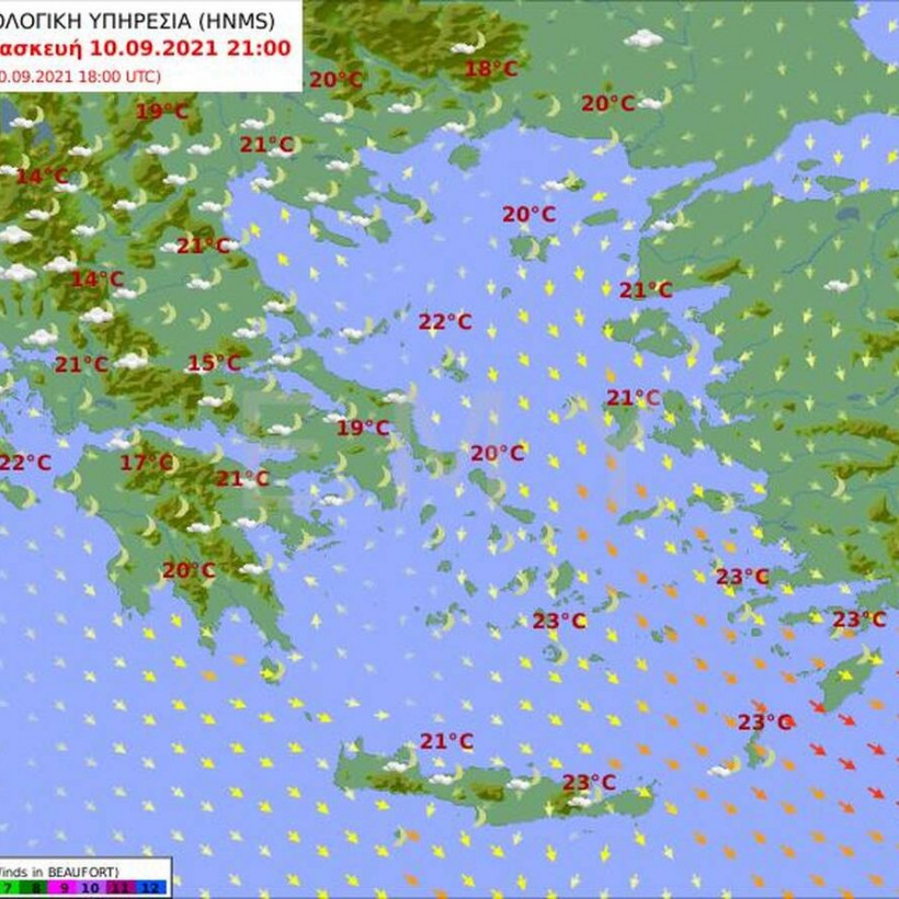 άνεμοι: Βορειοδυτικοί 4 με 5 και από το μεσημέρι στα ανατολικά έως 6 μποφόρ.