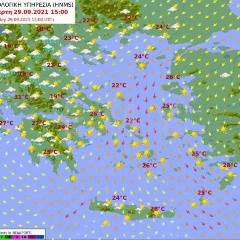 Θερμοκρασία: Από 20 έως 26 και στη νότια Κρήτη έως 29 βαθμούς Κελσίου.
