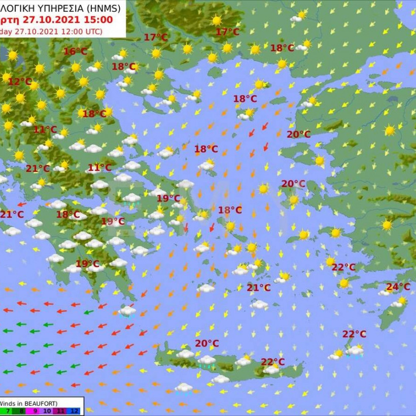 Ο χάρτης των θερμοκρασιών από την ΕΜΥ για σήμερα Τετάρτη 27 Οκτωβρίου