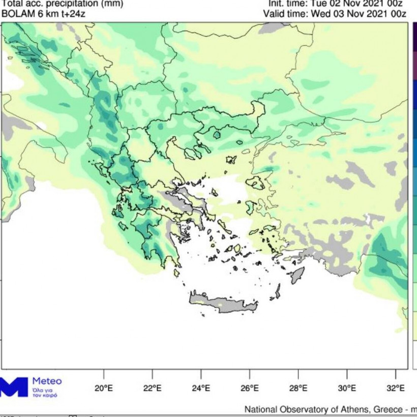 Σύμφωνα με το δίκτυο αυτόματων μετεωρολογικών σταθμών του Εθνικού Αστεροσκοπείου Αθηνών/meteo.gr, τα σημαντικότερα ύψη βροχής καταγράφονται στην Ήπειρο ενώ το μεγαλύτερο ύψος βροχής από τα μεσάνυχτα έως περίπου τις 08:00 της Τρίτης 02/11 καταγράφηκε στην Παραμυθιά με 40 mm.