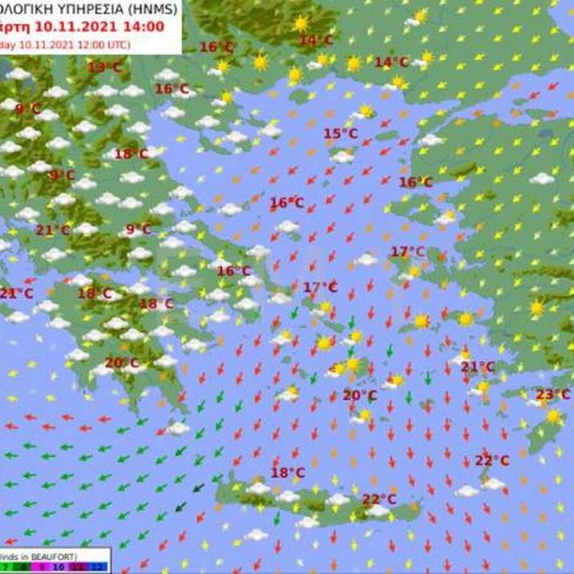 Θερμοκρασία: Από 9 έως 16 βαθμούς Κελσίου. Στη δυτική Μακεδονία και τη Θράκη η ελάχιστη 2 με 3 βαθμούς χαμηλότερη.