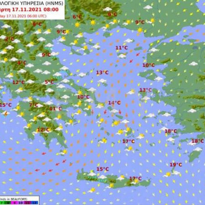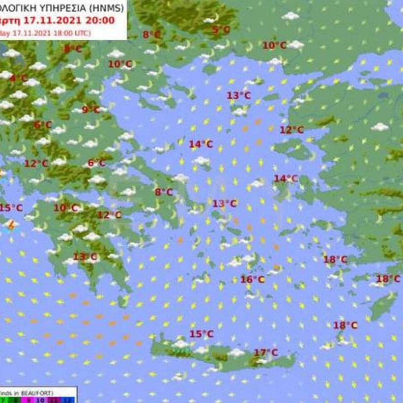 Θερμοκρασία: Από 14 έως 19 και στην Κρήτη έως 21 βαθμούς Κελσίου.