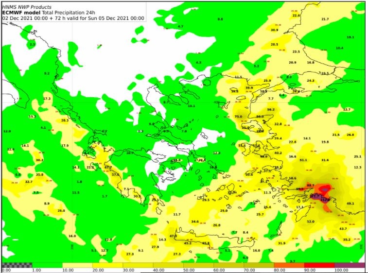 Στους χάρτες που ακολουθούν παρουσιάζεται ο προβλεπόμενος 24ωρος υετός της Παρασκευής και του Σαββάτου. Ο υετός αναφέρεται στο 24ωρο που προηγήθηκε από τη ώρα ισχύος που αναφέρεται σε κάθε χάρτη.
