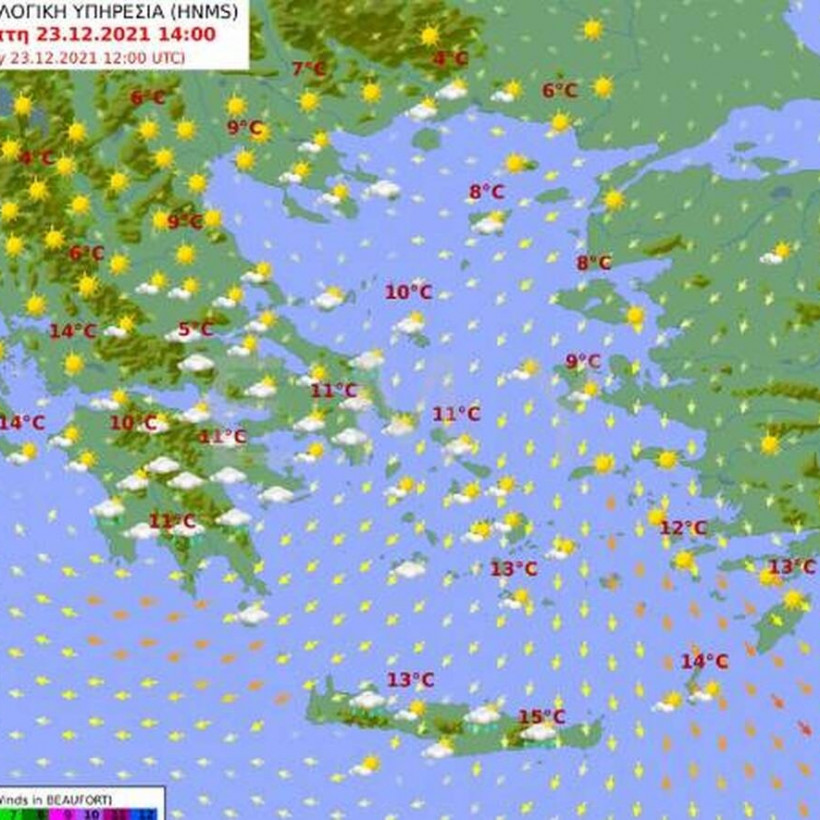 Άνεμοι: Από βόρειες διευθύνσεις 3 με 5 και στα Δωδεκάνησα τοπικά 6 μποφόρ.