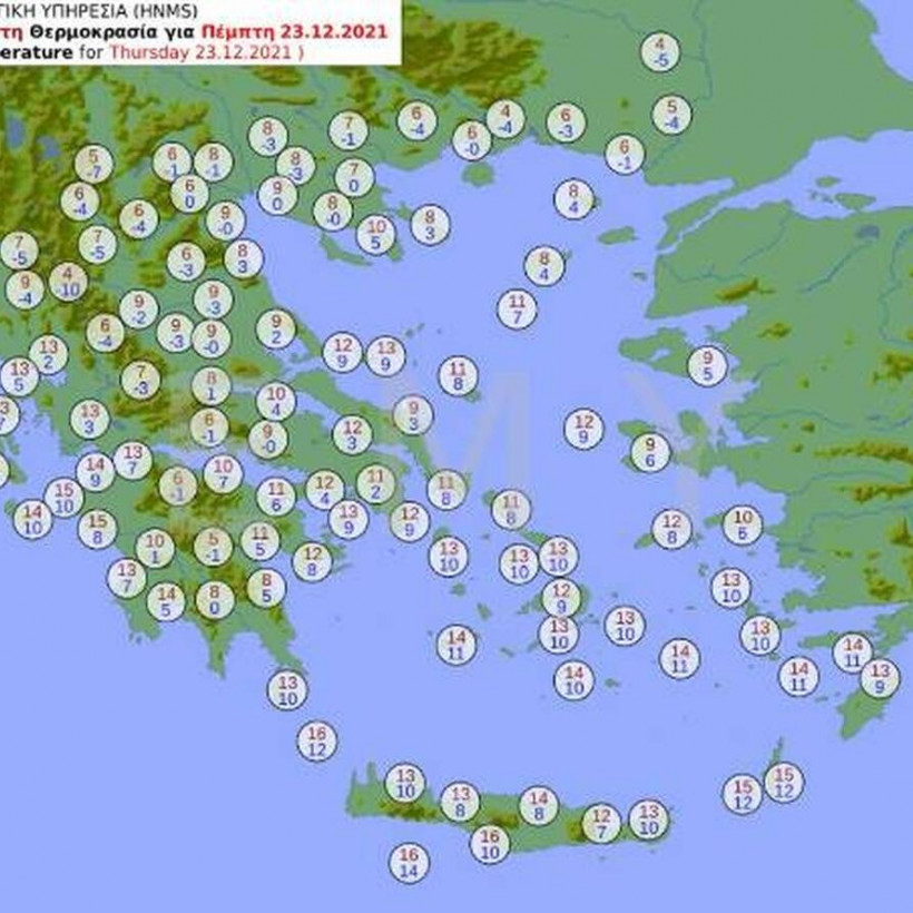 Η θερμοκρασία θα διατηρηθεί σε χαμηλά επίπεδα και τις πρωινές και βραδινές ώρες στα ηπειρωτικά θα σημειωθεί κατά τόπους παγετός, με ενδεικτική τιμή ελάχιστης θερμοκρασίας τους -5 βαθμούς Κελσίου. Οι μέγιστες τιμές της δεν θα ξεπεράσουν στα κεντρικά και βόρεια ηπειρωτικά τους 8 με 10 βαθμούς, στα υπόλοιπα ηπειρωτικά τους 11 με 14 βαθμούς και μόνο στη νησιωτική χώρα η θερμοκρασία θα φθάσει κατά τόπους τους 15 βαθμούς Κελσίου.